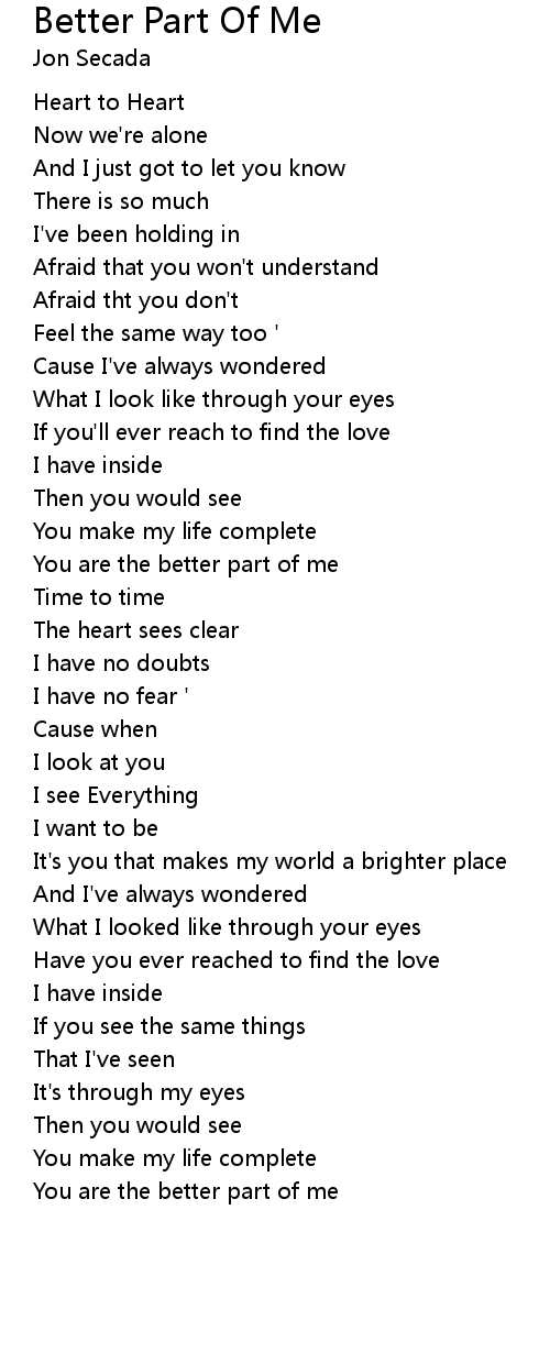 You are the better part of me |
