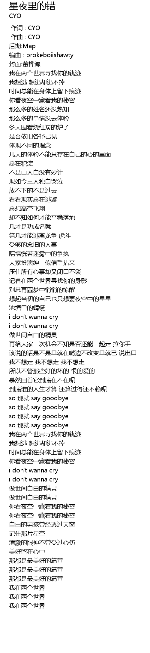 | [00:00.000] | 作词 : CYO |
