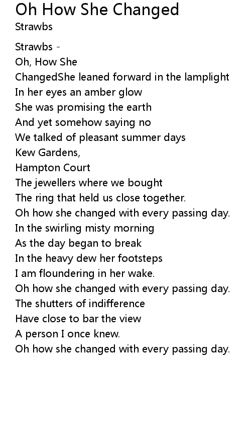 Oh how she changed with every passing day. |