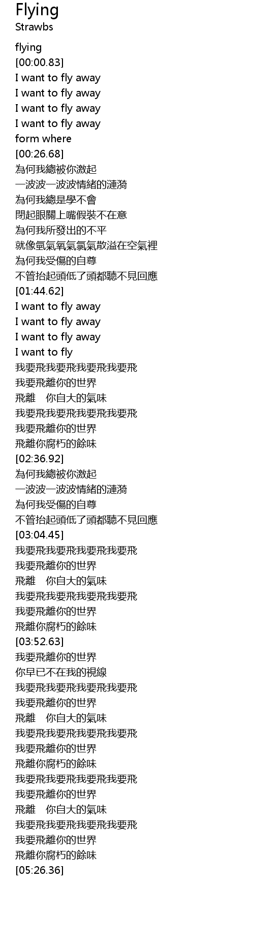 | [05:09.27] | 我要飛我要飛我要飛我要飛 |