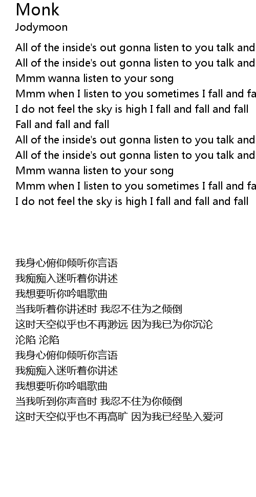 Mmm when I listen to you sometimes I fall and fall and fall |