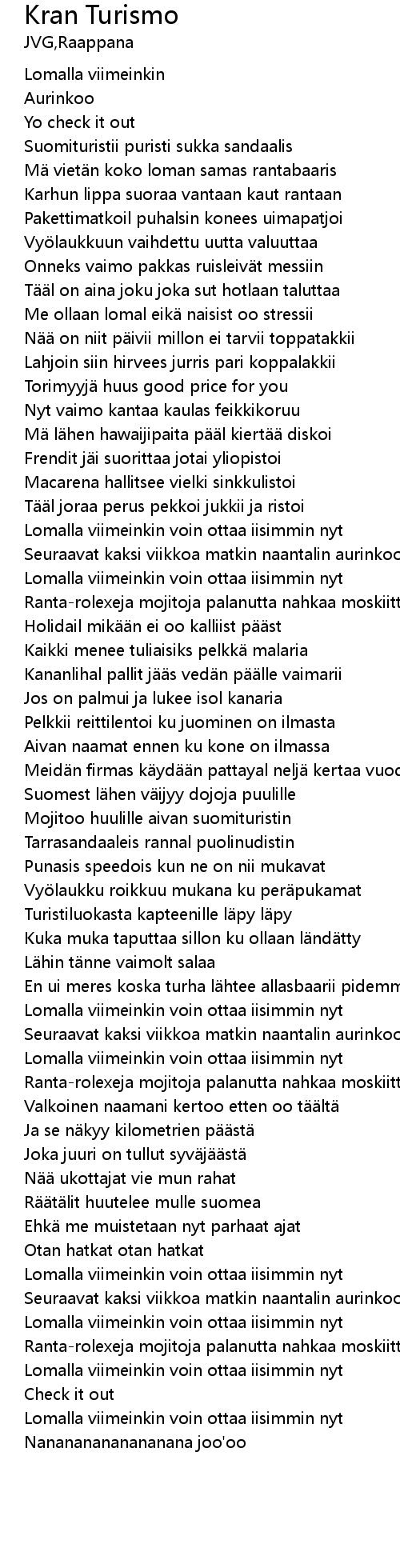 | [01:41.01] | Mojitoo huulille aivan suomituristin |