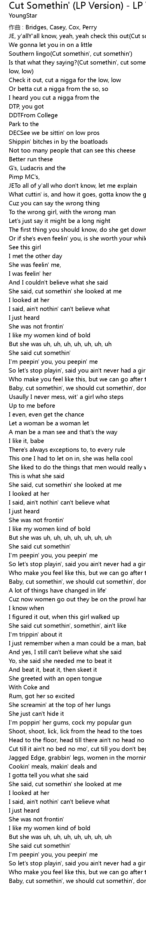 | Song | Cut Somethin' (LP Version) - LP Version |