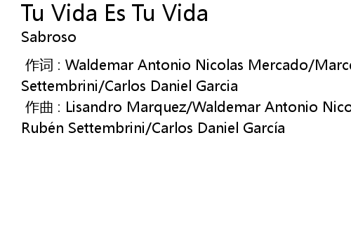| [00:00.000] | 作曲 : Lisandro Marquez/Waldemar Antonio Nicolas Mercado/Marcelo Rubén Settembrini/Carlos Daniel García |