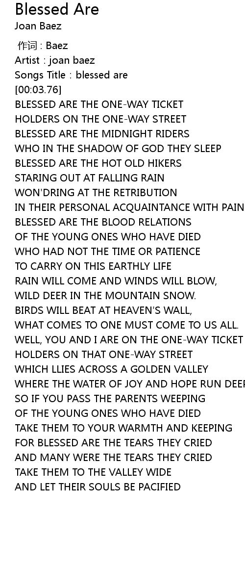 | [00:18.44] | BLESSED ARE THE ONEWAY TICKET |