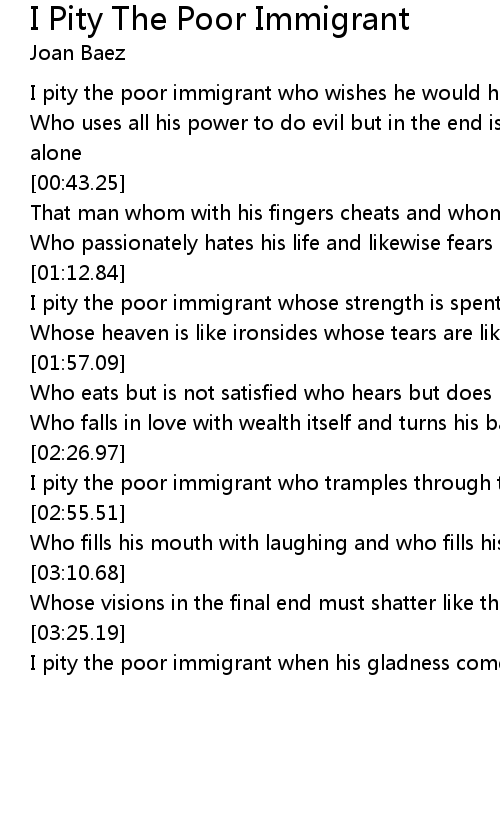 I Pity The Poor Immigrant Lyrics