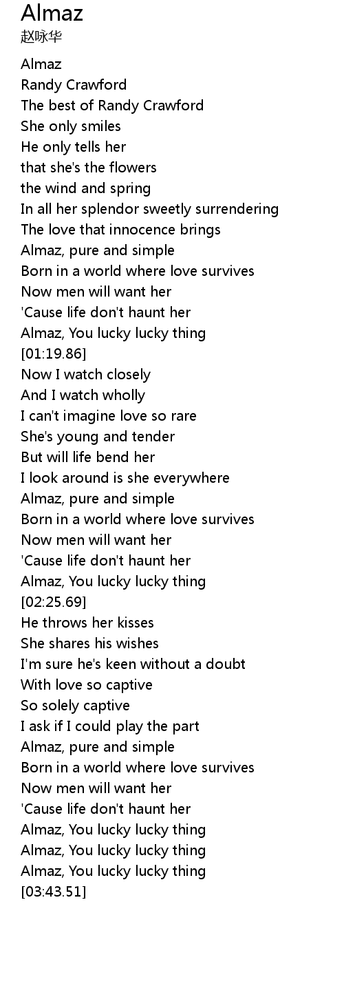 | [03:29.92] | Almaz, You lucky lucky thing |