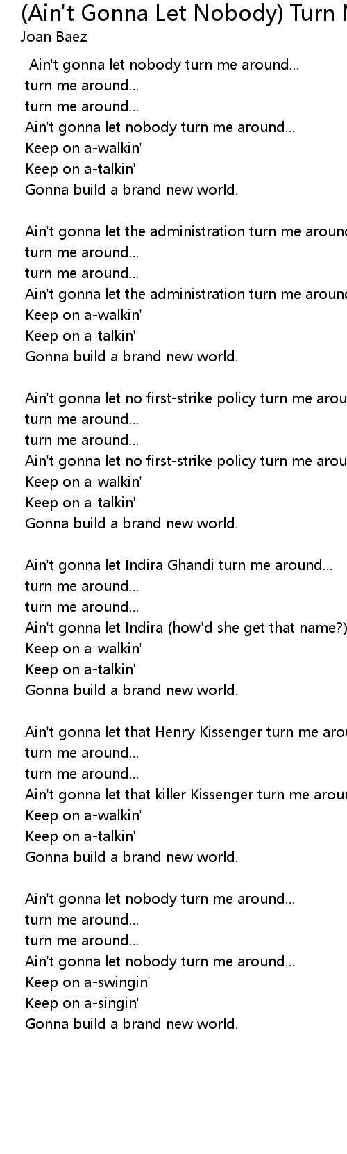 Ain't gonna let nobody turn me around... |