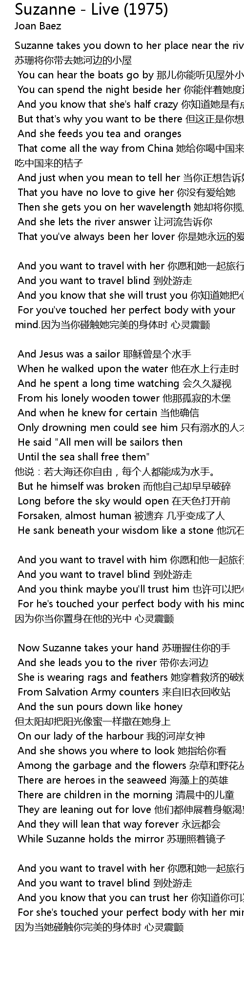 | Now Suzanne takes your hand su shan wo zhu ni de shou | |