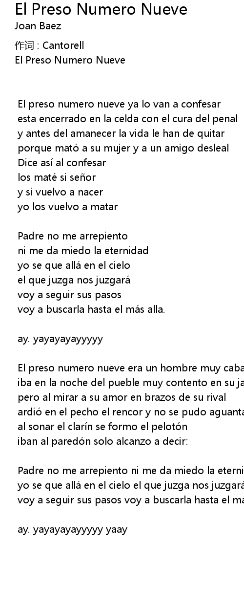 | Song | El Preso Numero Nueve |