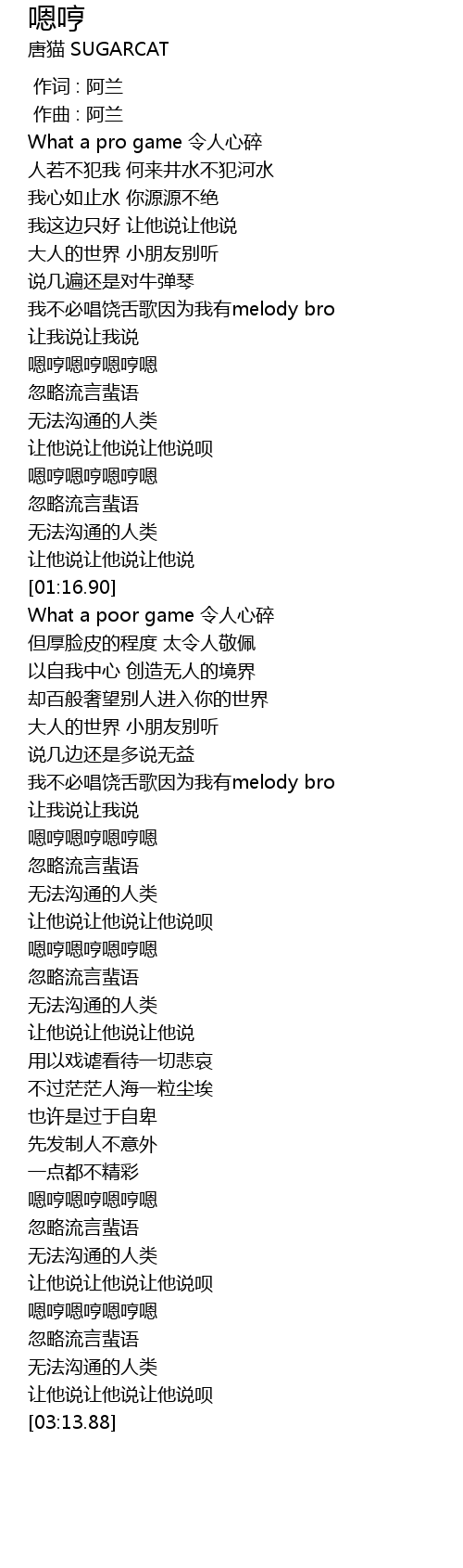 | [00:38.82] | wo bu bi chang rao she ge yin wei wo you melody bro |