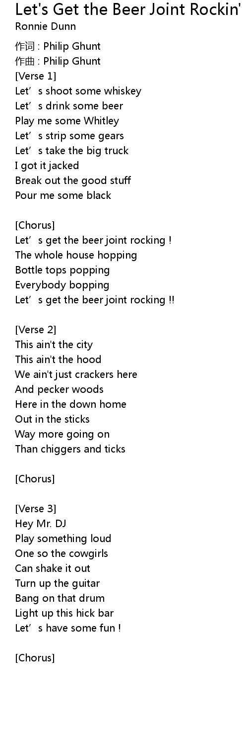| Song | Let's Get the Beer Joint Rockin' |