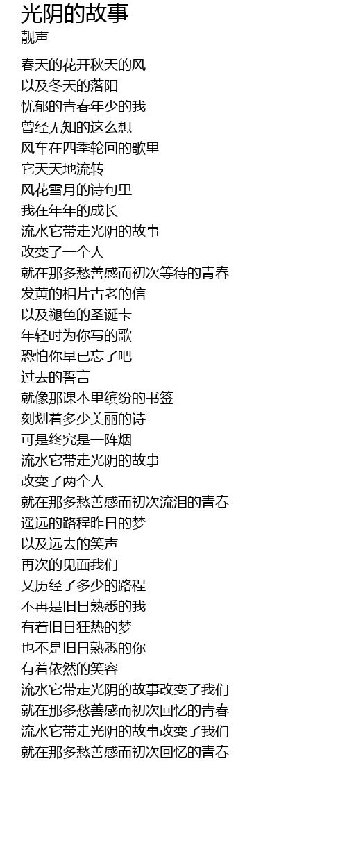 | [02:55.323] | 流水它带走光阴的故事改变了我们 |