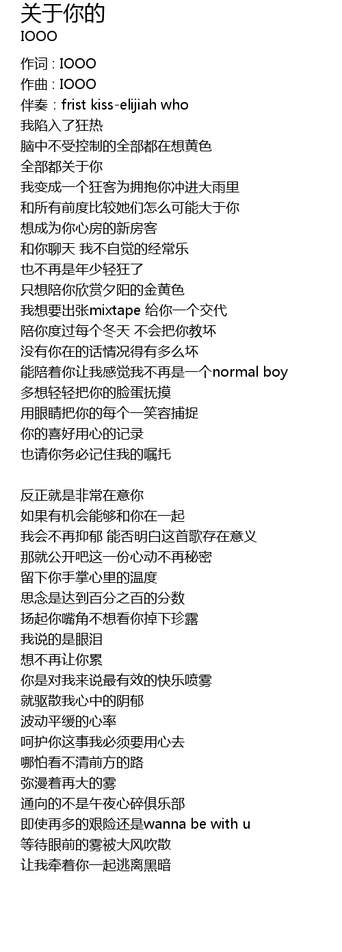 | 能陪着你让我感觉我不再是一个normal boy | |