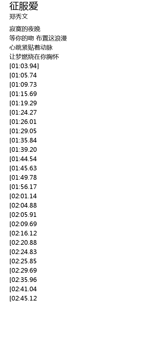 | [00:59.46] | 让梦燃烧在你胸怀 |