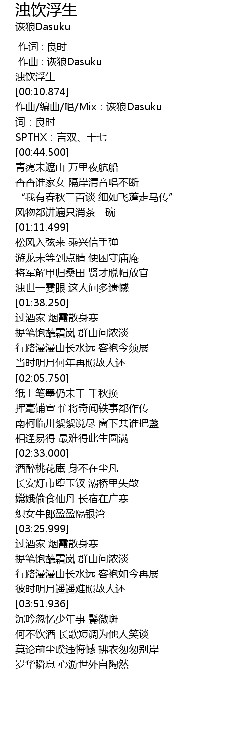 | [03:59.436] | 何不饮酒 长歌短调为他人笑谈 |