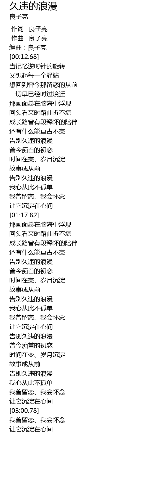 | [01:59.22] | 告别久违的浪漫 |