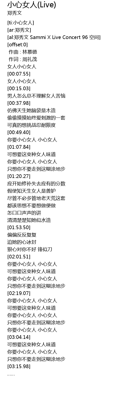 | [03:00.40] | 你要小心女人 小心女人 |