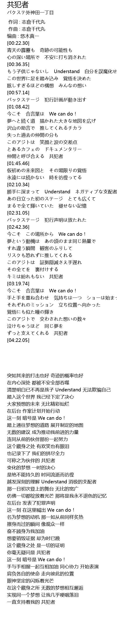| [03:11.03] | キミは紛れもない 共犯者 |