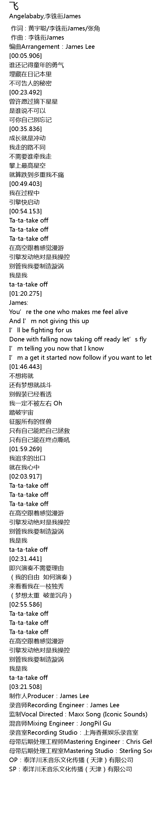 | [03:21.764] | 制作人Producer:James Lee |