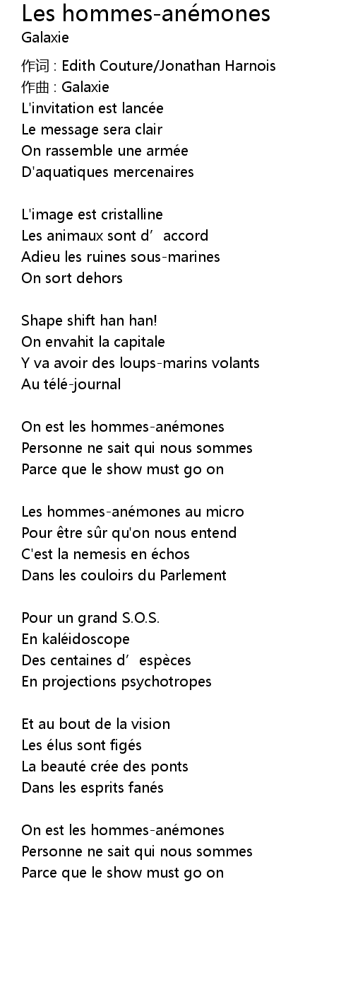 | Song | Les hommes-anémones |