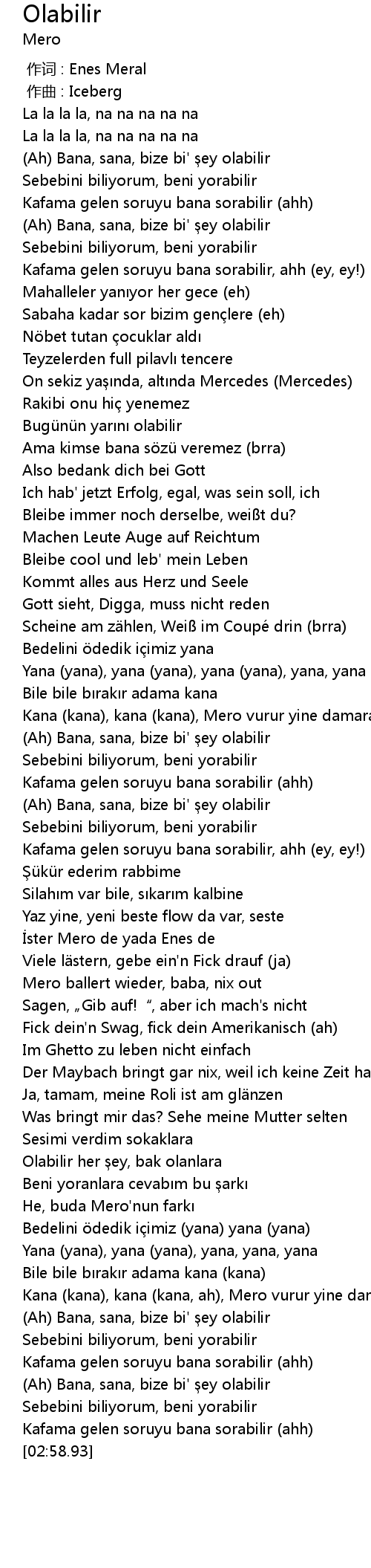 | [00:00.000] | 作词 : Enes Meral |