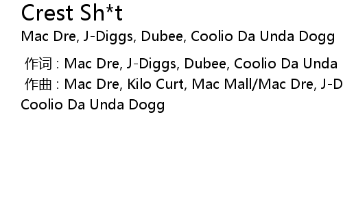 | [00:00.000] | 作曲 : Mac Dre, Kilo Curt, Mac Mall/Mac Dre, J-Diggs, Dubee, Coolio Da Unda Dogg |