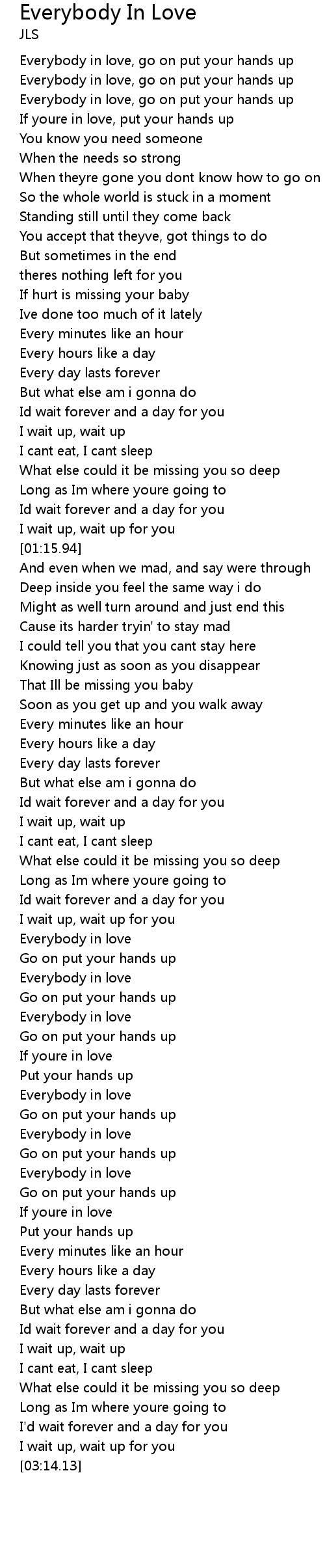| [00:09.99] | Everybody in love, go on put your hands up |