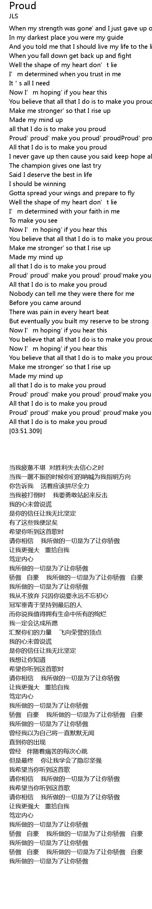 | [01:11.680] | Proud' proud' make you proud' proudProud' proud' make you proud' proud |