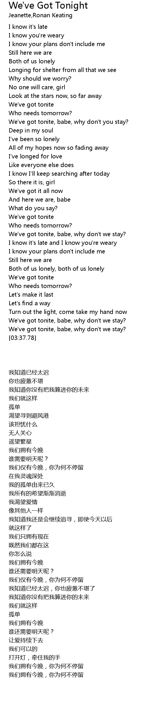 [03:31.34] We've got tonite, babe, why don't we stay?