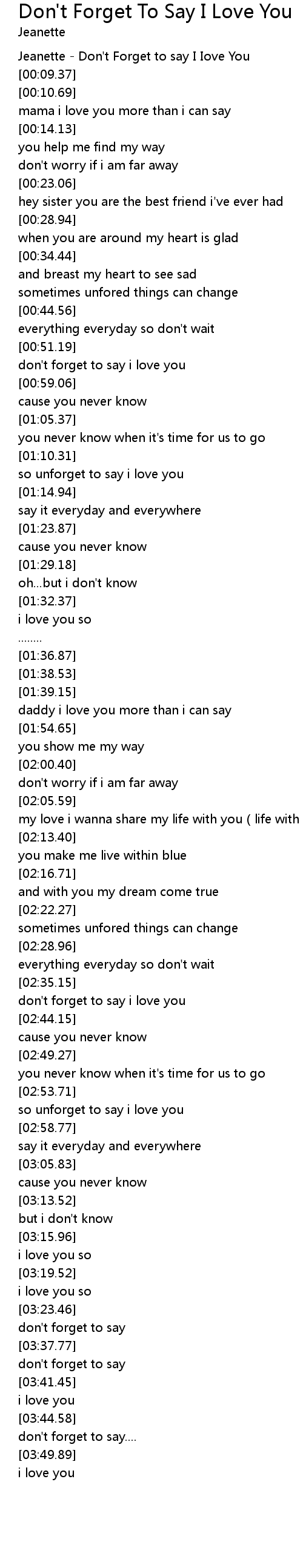 | [00:03.91] | Jeanette Don' t Forget to say I Iove You |
