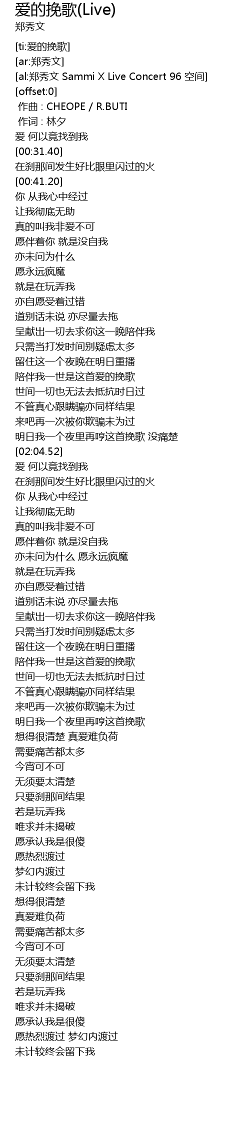 | [al:郑秀文 Sammi X Live Concert 96 空间] | |