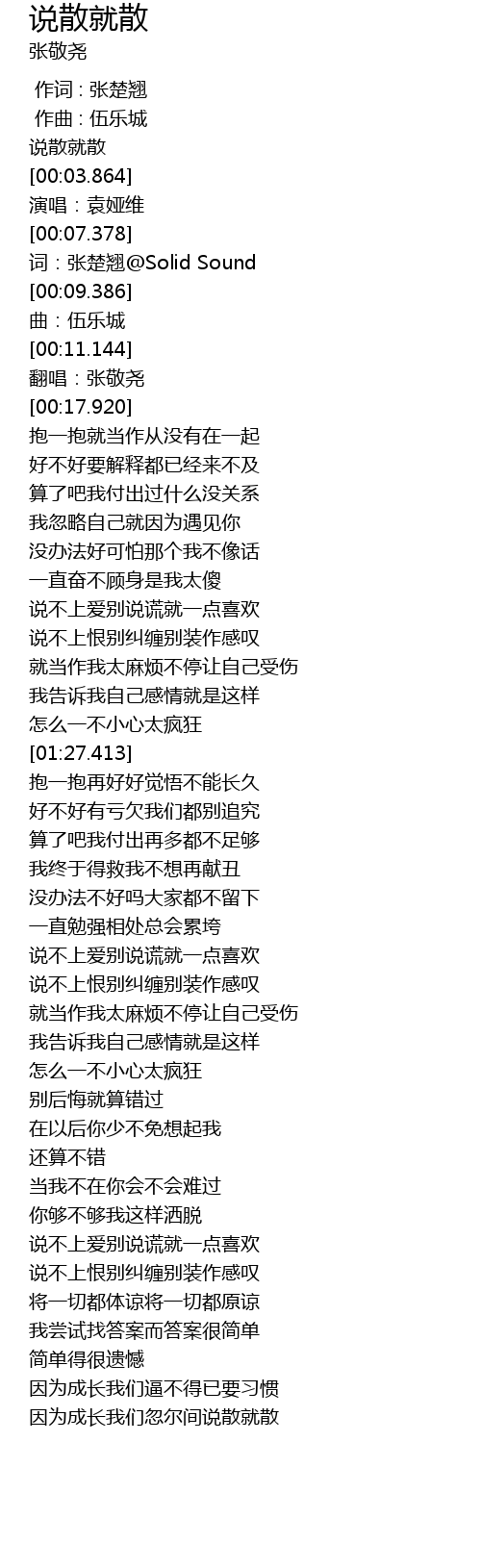 | [00:08.383] | cí: zhāng chǔ qiào Solid Sound |