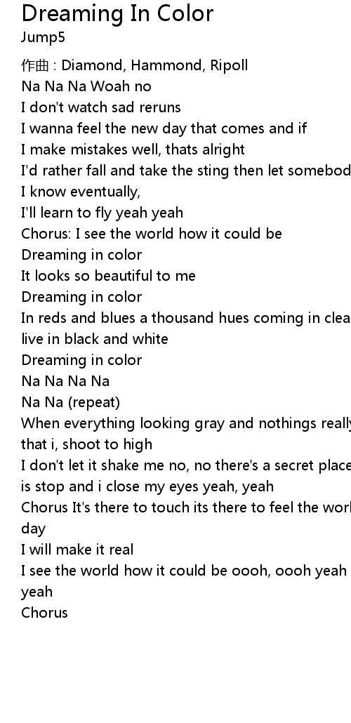 | Song | Dreaming In Color |