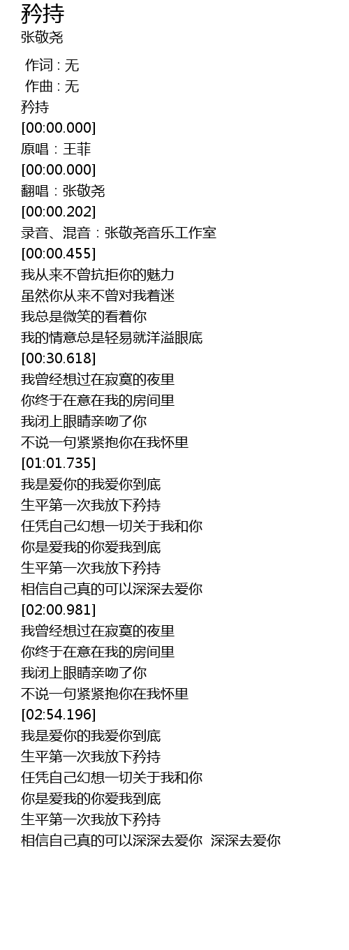 | [00:00.202] | 录音、混音:张敬尧音乐工作室 |