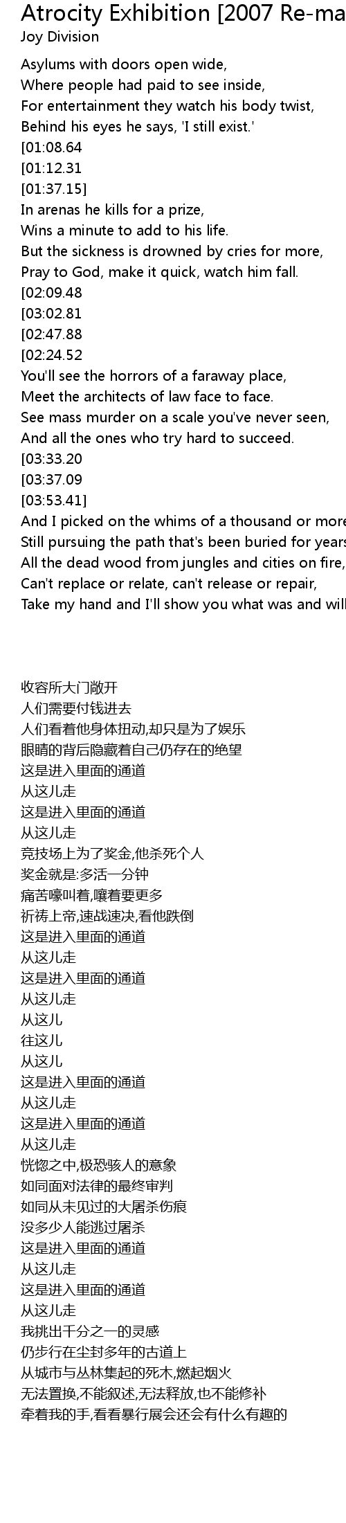 Atrocity Exhibition [2007 Re-mastered Album Version] Lyrics