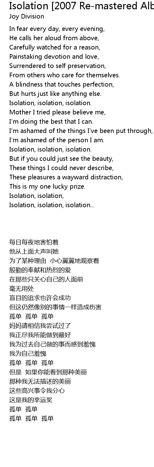 Isolation [2007 Re-mastered Album Version] Lyrics
