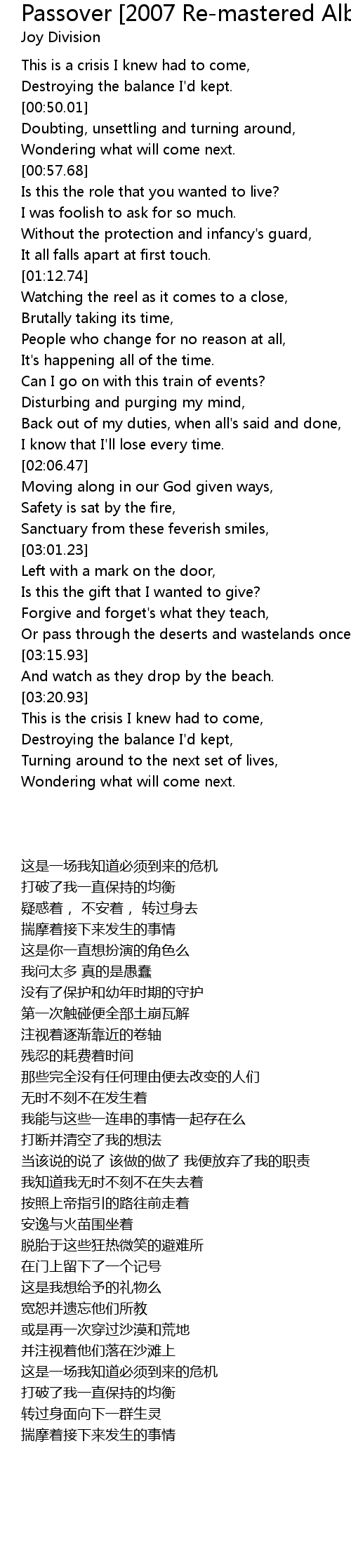Passover [2007 Re-mastered Album Version] Lyrics