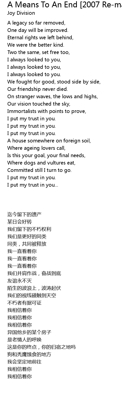 A Means To An End [2007 Re-mastered Album Version] Lyrics