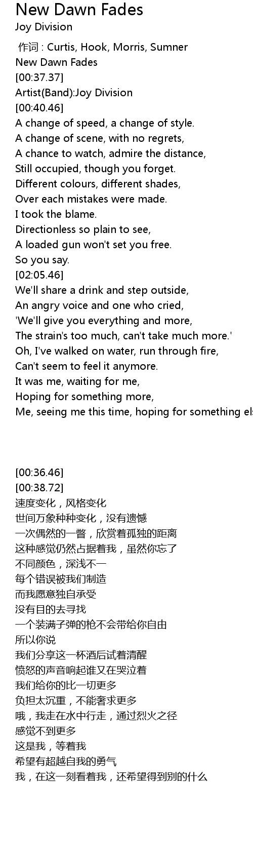 | [00:00.00] | 作词 : Curtis, Hook, Morris, Sumner |