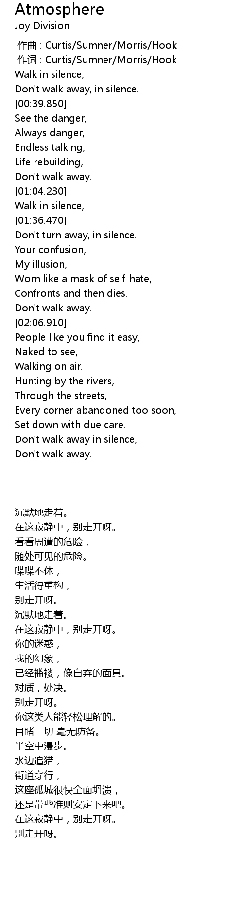 | [00:33.290] | Don't walk away, in silence. |