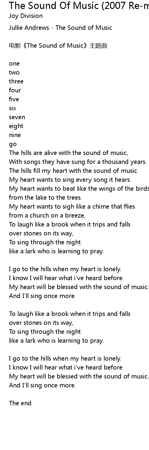 | Song | The Sound Of Music (2007 Re-mastered) |