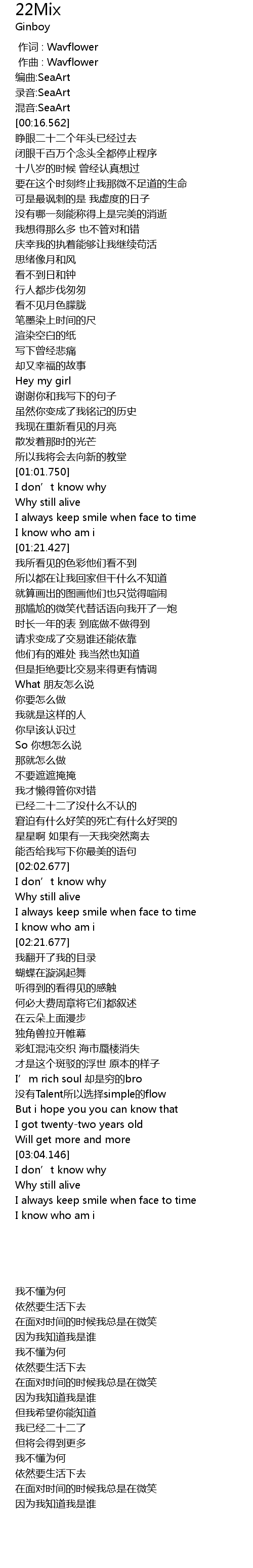 | [01:52.677] | 已经二十二了没什么不认的 |