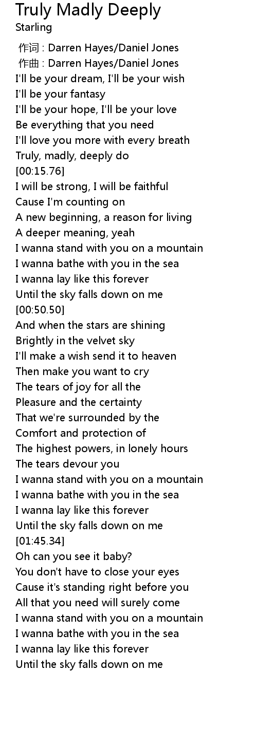| [00:00.000] | zuò cí : Darren Hayes Daniel Jones |