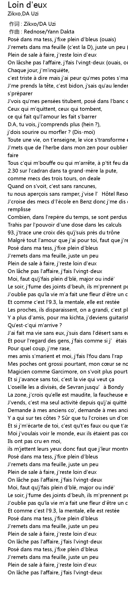 | [02:58.74] | Plein de sale à faire, j'reste loin d'eux |