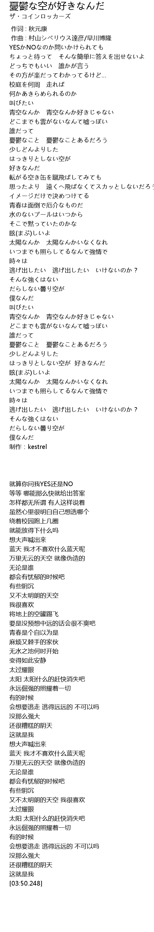 | [02:53.348] | 青空なんか 青空なんか好きじゃない |