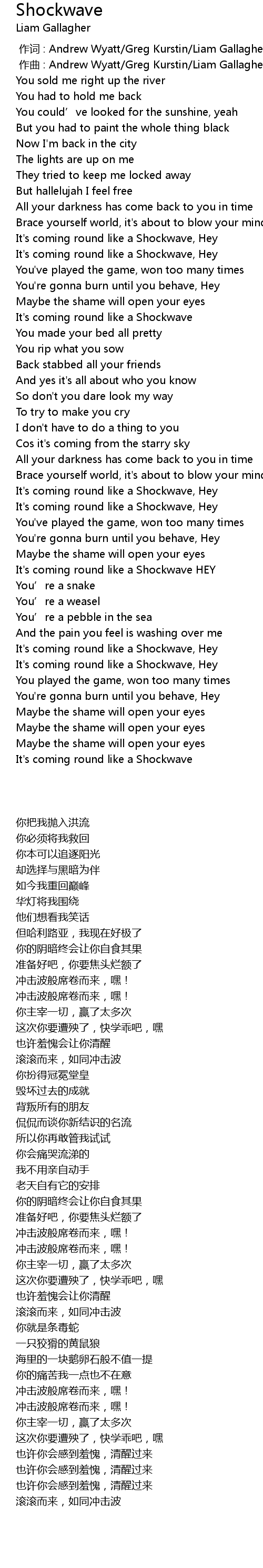| [00:00.000] | 作词 : Andrew Wyatt/Greg Kurstin/Liam Gallagher |