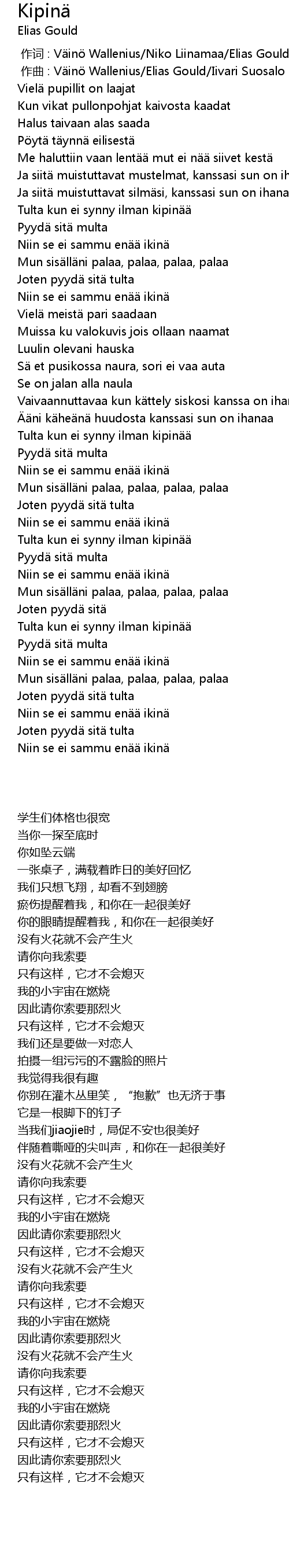 | [00:00.000] | 作词 : Väinö Wallenius/Niko Liinamaa/Elias Gould/Iivari Suosalo |