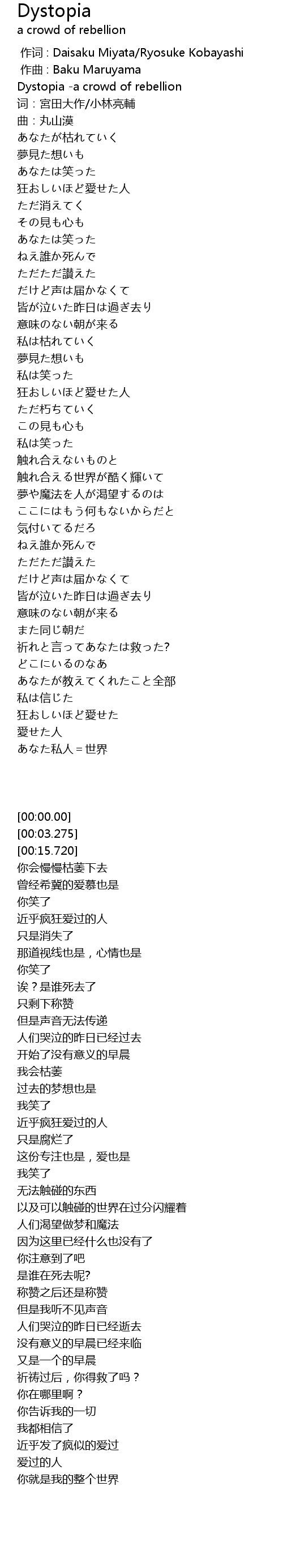 | [00:00.00] | Dystopia -a crowd of rebellion |