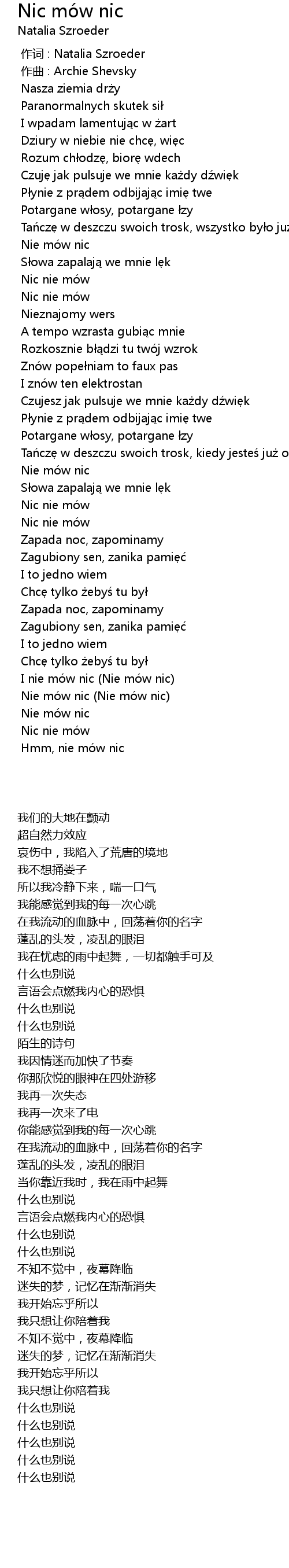 | [02:44.887] | Nie mów nic (Nie mów nic) |